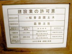 所有資格 | ・大阪府知事許可 第143861号(土木工事業、造園工事業) |